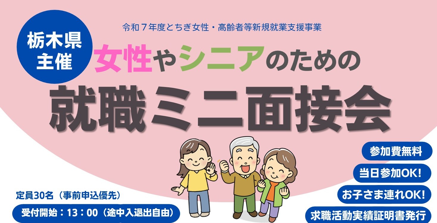 とちぎジョブモールでは、就職活動支援、若者、シニア、女性、ミドル世代向け等セミナーを開催しています。